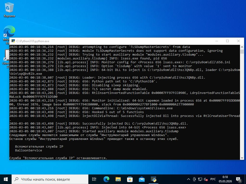 2026-03-05 00:18:36,232 [modules.auxiliary.tlsdump] INFO: lsass.exe found, pid 656