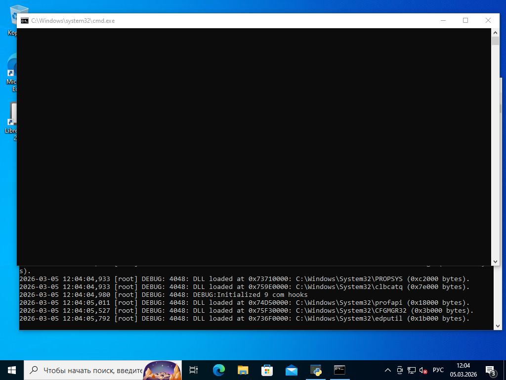 2026-03-05 12:04:00,699 [root] DEBUG: Successfully injected DLL C:\nrmtx0xa\dll\wvQSlzsE.dll.