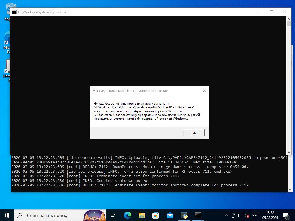 Hit: PID 7112 triggered the Yara rule 'IsPE32' with data '[]'
